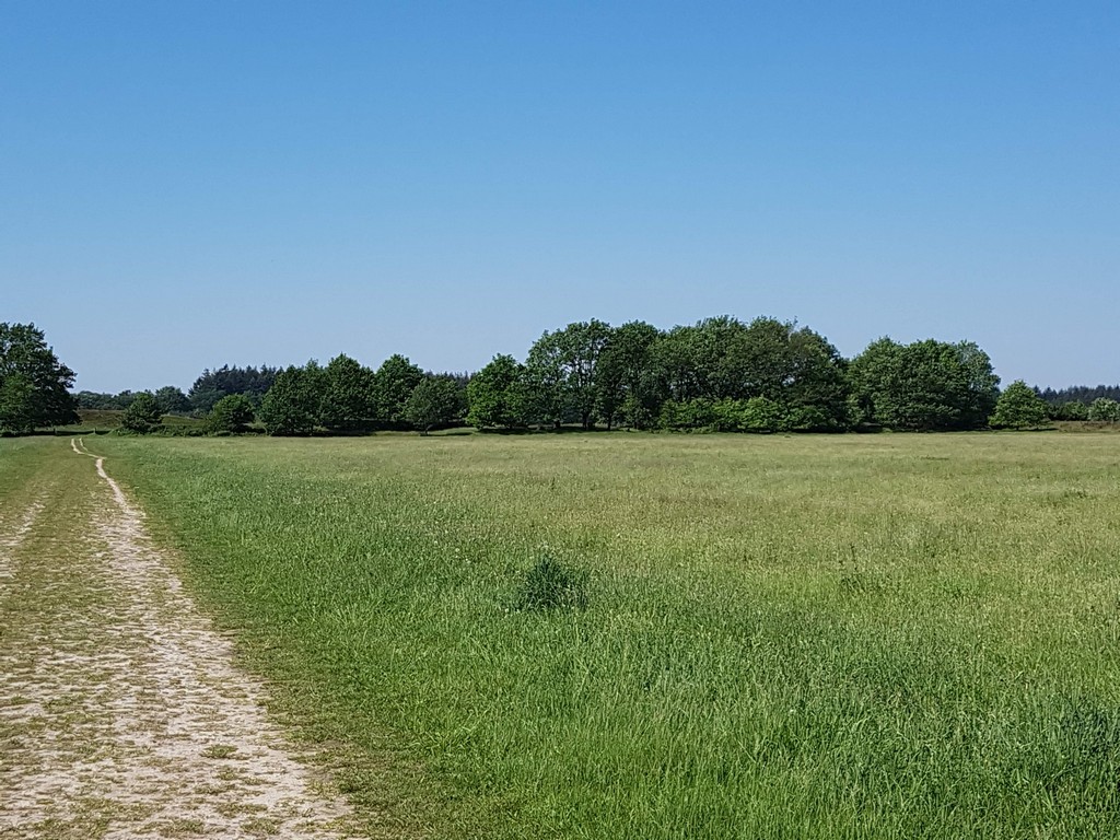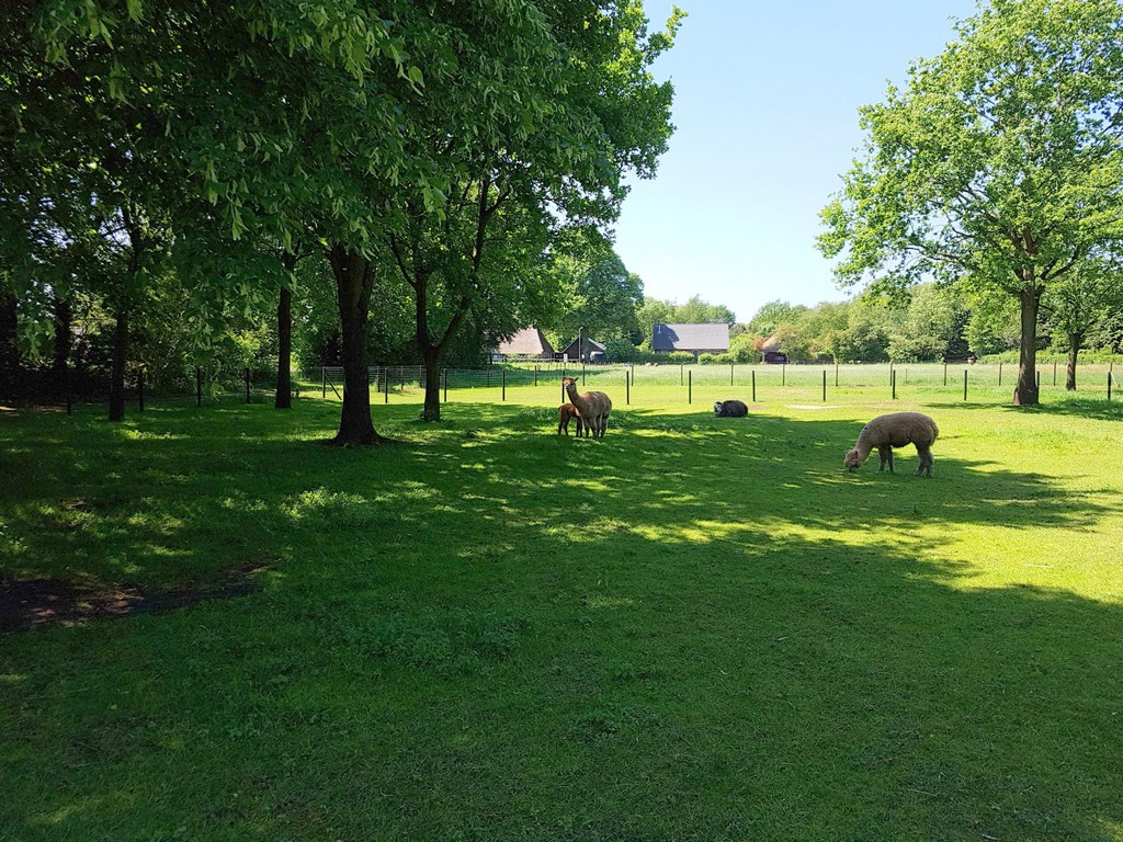 Het kan niet op met het mooie weer deze meimaand. Het lijkt wel of de “climate-change” ons in Noord-Europa beter en warmer weer brengt. Als dat waar is mogen we zeker niet klagen. Hoe dan ook, wij lopen weer op deze prachtige 2e Pinksterdag. In Exloo eerst aan de koffie natuurlijk en daarna op pad. Buiten het café worden we al opgewacht door 2 schaapjes, gemaakt van een steen uit de préhistorie (zie foto hierboven). Leuk gedaan.