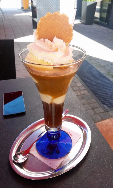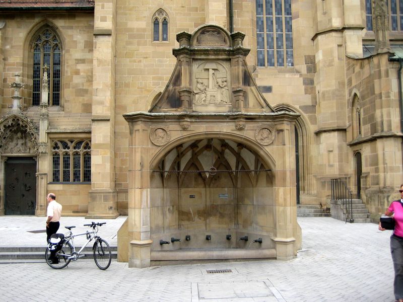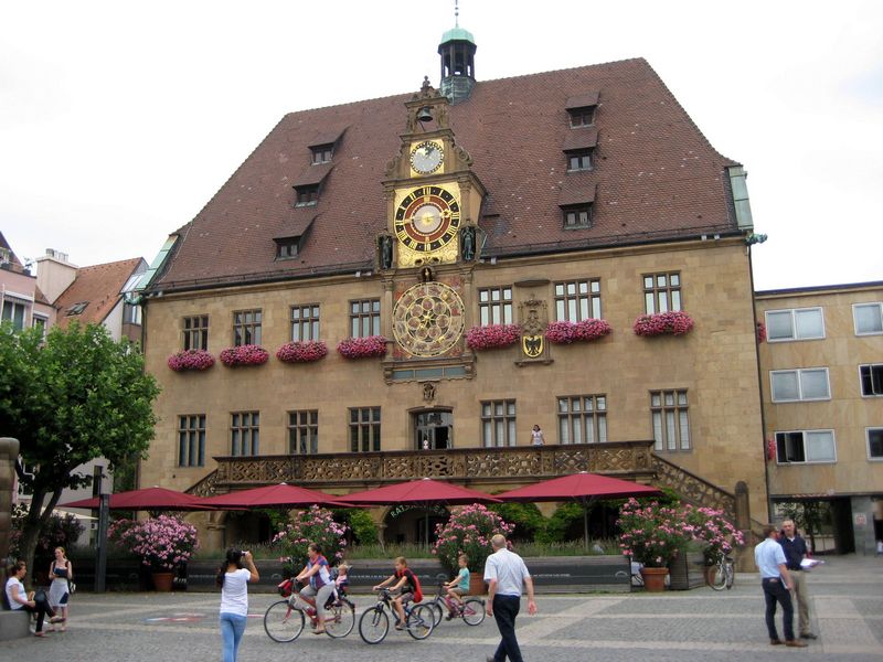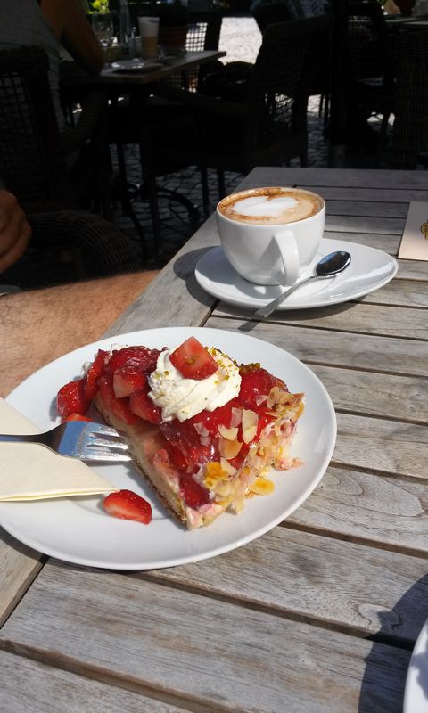 Om te beginnen lassen we een rustdag in, en zullen we vandaag bespreken hoe het verder moet. De tocht naar Rome voortzetten is geen optie meer. Hierna staan we relaxed op, ontbijten op ons dooie gemak en fietsen naar Heilbron dat 18 km verderop ligt. Uitgebreid aan de koffie met aardbeientaart, beetje rondgewandeld. Daarna gelunched en verder een beetje genikst in dit stadje. Wel nog zwembroek en bikini gekocht, want we willen zwemmen straks. Ook tijdschriften en een boekje van de Neckar Radweg gekocht, want we denken erover die route verder te gaan rijden.