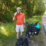 Buiten Genève komen we al vrij snel steile klimmetjes tegen. Niet erg getraind als we zijn, valt dat helemaal nog niet mee. We komen een fietser uit Portugal tegen met wie we even een praatje maken. Hij is onderweg vanuit Portugal via de Middellandse zee in Frankrijk naar Noorwegen en fietst langs de Rhône omhoog naar Genève. Hij vertelt en passant alvast wat bijzonderheden over de route, zoals we die verderop kunnen verwachten. Omgevallen bomen op het pad, en zo. En hij vroeg of we lid waren van de “Warm Showers” (fietsers die kunnen overnachten bij elkaar, zie deze link). Misschien moeten we dat ook eens overwegen.