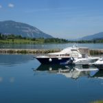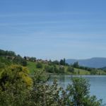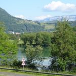 Om 05:45 uur opgestaan want het wordt een warme dag. De verwachting voor vandaag is 29 graden C. Na vertrek van de camping eerst even inkopen voor de lunch gedaan en vervolgens bij een bakker in Seyssel ons 2e ontbijt (het eerste ontbijt op de camping bestaat uit een bekertje yoghurt met een reep). Op z’n Frans, dus een kop koffie met een pain au chocolat. Daarna op pad. Er komt nog 1 klimmetje, maar dat is het dan wel voor vandaag. Lekker vlak fietsen en in Chanaz op het terras voor een koel flesje Perrier. Dit plaatsje is trouwens nogal toeristisch, een beetje Valkenburg aan de Rhône.