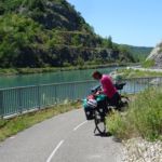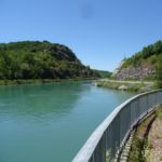 Verderop zou er volgens het boekje bij het plaatsje Virignin een nieuwe fietsbrug moeten zijn, die eind 2018 zou worden opgeleverd. Maar daar zijn ze net aan de werkzaamheden begonnen en zo te zien zal het ook in 2019 nog wel niet gereed komen, denken wij. Gelukkig is het stukje over de D1504 op deze zaterdagmiddag niet druk. Voor de zekerheid wel even de helmen op en de verlichting aan, vanwege de 3 tunnels. We gaan kamperen op een prima camping in Murs-et-Gélinieux. Er is een zwembad en er zijn veel kinderen, een goed teken.  De boodschappen voor het diner doen we bij een kleine dorpssuper in het plaatsje La Bruyère.
