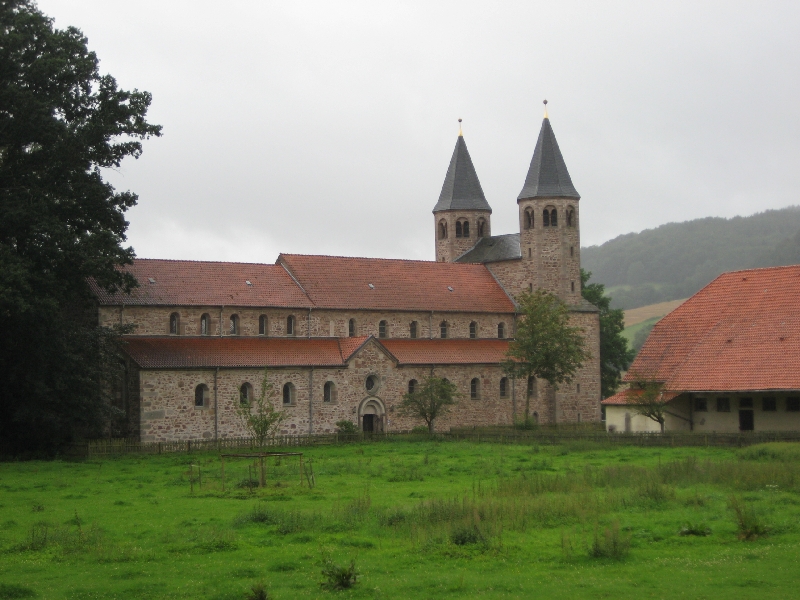 De tocht naar Beverungen is goed te doen. Hier en daar een kleine helling, maar dat kunnen wij wel aan.  We komen in Bursfelde een Benedictijner klooster tegen, waarvan alleen nog de kerk overeind staat, en die bekijken we even. Daarna broodjes eten met kaas, die we in Hann. Münden hebben gekocht. Gelukkig is het nu even droog en dat blijft het de rest van de middag ook. Met 15 graden is het wel wat te koud eigenlijk.