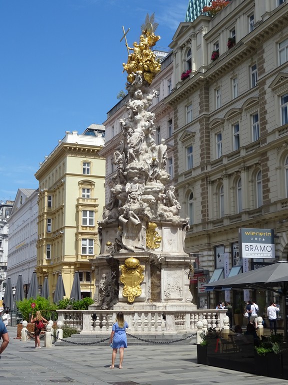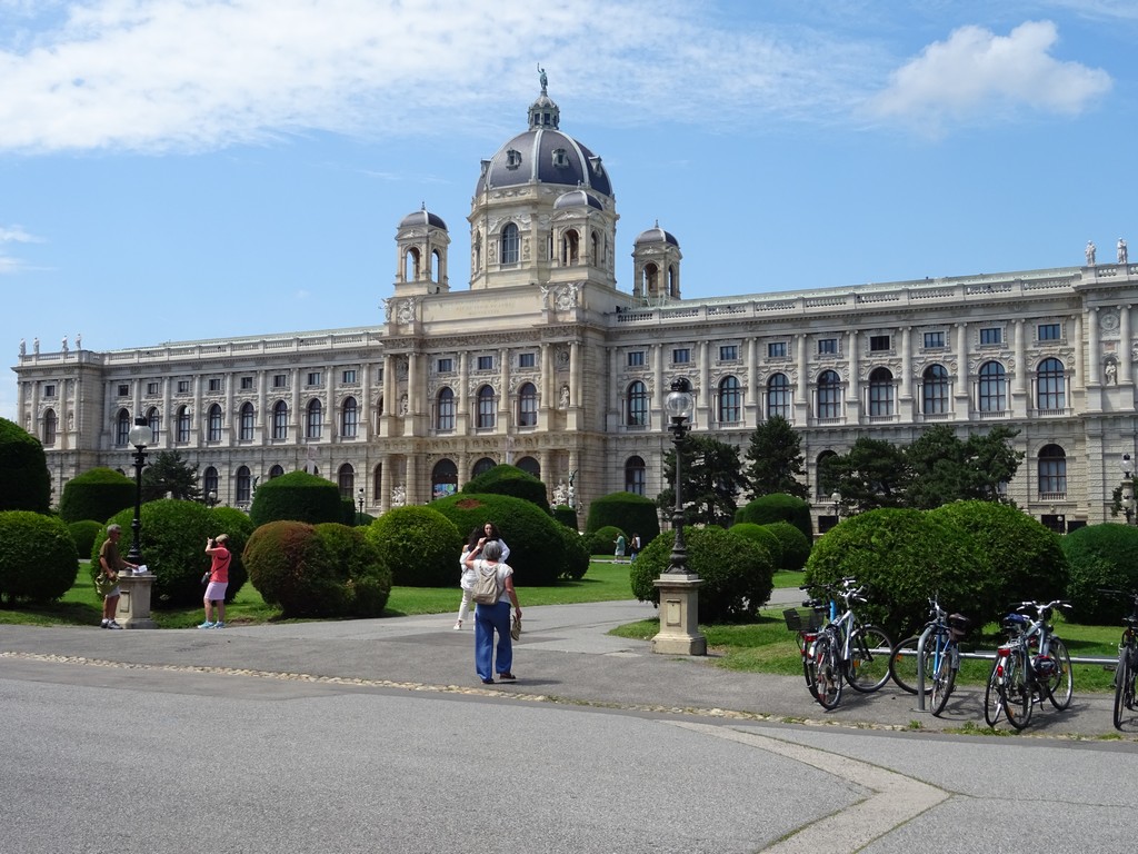Na het ontbijt rond 9 uur op pad. We willen eigenlijk alles met de tram doen in de stad om zoveel mogelijk te zien. Bij het metrostation vlakbij kunnen we 2 dagkaarten kopen, die 2 dagen geldig zijn. Met tramlijn 71 naar het centrum en bij de Opera eruit. Die opera is meteen al een heel imposant gebouw en er zullen nog vele volgen. We bespreken of Wenen kan wedijveren met Parijs, Londen of Berlijn. Renée vindt van niet (té protserig en teveel erop gericht te imponeren) en ik twijfel wat. Veel gebouwen zijn gemaakt tijdens het voorspoedige bewind van het Habsburgse keizerrijk van de 16e tot de 19e eeuw. Dat keizerrijk eindigde in 1918 na WO1. Het is allemaal wel pompeus en barok-achtig. Niet lelijk vind ikzelf.