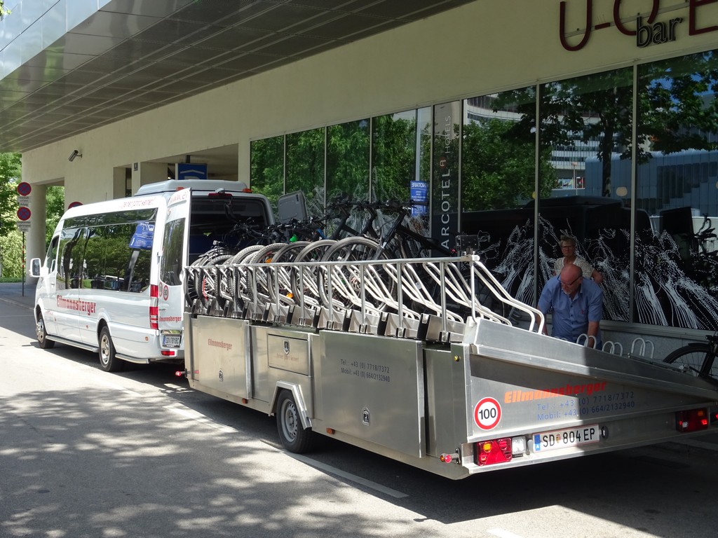 Rond 14:30 inderdaad op pad naar de volgende 2 hotels om fietsers op te pikken. We zitten met een man of 13 in het busje. Rond 19 uur komen we aan in Schärding. We pakken alles meteen in de auto en gaan op weg. Vanuit de auto een hotelletje gebeld in Sinzing, vlakbij Regensburg. Snel ingecheckt en per fiets naar een pizzeria in de buurt. Beetje laat allemaal maar dat gaat prima.