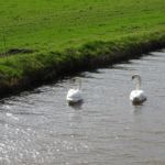 Wat verderop lopen we langs akkers en weilanden. Het pad daar is wel erg modderig geworden door alle regen van de laatste weken en we moeten een beetje door de berm lopen. Verderop passeren we de Oude Vaart en de Drentse Hoofdvaart en lopen we Uffelte binnen. Uffelte is van oudsher ook zo’n oud Drents dorpje met veel oude boerderijen. Wat een beetje jammer is dat aan de andere kant van de hoofdstraat allemaal lelijke nieuwbouw staat. Dat contrasteert wel erg met de oude boerderijtjes. Ook zien we dat sommige oude, wat grotere boerderijen helemaal zijn opgeknapt en zijn ingedeeld als meerdere woonhuizen, tot soms 4 stuks aan toe. Ook wel jammer eigenlijk, want erg goed geslaagd is dit ook niet. Aan de andere kant is het opknappen en onderhouden van deze oude boerderijen voor particulieren natuurlijk niet te betalen. Dus zeg maar even hoe het dan wel moet!