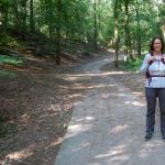 Na dit gedeelte kom je in de bossen terecht van het Drents-Friese Wold. We zoeken eerst een bankje om de broodjes voor de lunch te eten. We willen er eentje met rugleuning en daar is de app Alle Bankjes weer behulpzaam bij. Prima app! Verderop passeren we een plek waar in 1943 een Canadese bommenwerper werd neergeschoten. Alle 7 bemanningsleden (tussen 18 en 22 jaar oud) kwamen om het leven.