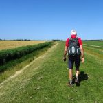Bovendien zijn de vaarten ernaast de plekken waar de Elfstedenrijders langskomen. Ook zien we veel koeien en schapen op deze dijken. Lastig is, dat het hier erg onregelmatig loopt. Je voeten zwikken voortdurend door de kuilen en gaten die de dieren achterlaten. Na een tijdje begin je dan ook erg de spieren van je voeten te voelen. Maar toch is het wel mooi om hier te lopen, met je gedachten bij de Elfstedenrijders.