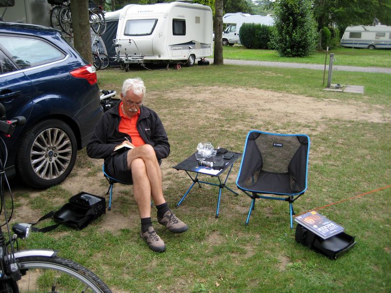 Na het ontbijt in het hotel uitgecheckt en naar het station gefietst. We willen per trein naar Koblenz en dat gaat erg gemakkelijk. Reserveren op lokale lijnen is niet nodig. In Koblenz koffie gedronken en daarna nog wat rondgelopen op zoek naar een boekhandel. We willen nog naar Keulen en zoeken een camping daar in de buurt en moeten even een campinggids inkijken. Want helaas is de smartphone van Wim (met de camping apps erop) defect geraakt een paar dagen geleden. Op Renée’s telefoon had ik wel de navigatieapp geladen als backup, maar niet de camping apps.. Het downloaden daarvan mislukt ook nog, en bovendien kost dat veel data, dus daar stoppen we na 1 poging maar mee. Al zoekend stel ik voor gewoon in Remagen te gaan staan, die kennen we tenslotte. Zo gezegd zo gedaan. De fietsen achterop en de bagage in de auto, en daarna (in de regen) op weg naar Remagen.
