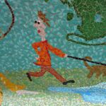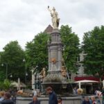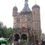 Met het pontje steken we over en gaan we even koffiedrinken bij Johan en Corrie. Johan, Wim’s oudste broer, is een week geleden 80 geworden. Ze wonen hier al 50 jaar, dus het zijn echte Deventernaren geworden. En Deventer is ook weer een leuke stad zien we, als we na het bezoek het centrum verkennen. Via de grote kerk en de Deventer Markt met het Waag gebouw verlaten we het centrum en lopen langs het NS station naar het Rijsterborgherpark, een restant van de verdedigingswal van Deventer. In de gracht drijven allemaal beeldjes van een soort suppers.