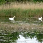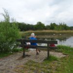 Daarna wordt het tijd voor de lunch. Bij een meertje is een bankje. We worden gezelschap gehouden door 2 zwanen die overigens geen nest hebben, hetgeen ons verbaast. Zeker geen zin dit jaar.