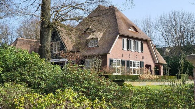 We lopen verder en gaan via de verlengde Hereweg naar Haren en kunnen de villa’s bewonderen die hier staan. In het centrum van Haren opnieuw aan de koffie (met wat lekkers voor Wim). Het is warm genoeg om buiten op een terras te zitten. Het is gezellig druk hier. Daarna terug richting de P&R langs de snelweg, waar de auto staat.