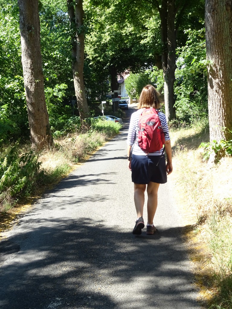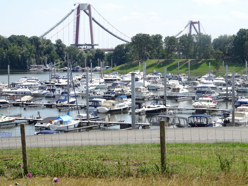 Daarna gaat het verder naar (laag) Elten en via een grote omweg lopen we naar het dorpje Spijk toe. Het is even zoeken naar een mooi plekje voor de lunch, graag met uitzicht op de Rijn. Maar het wordt een plekje zonder uitzicht. Het wordt ook echt heet nu. Het is ook erg benauwd. Er gaat weer veel water door onze kelen. Gelukkig hebben we genoeg bij ons (een liter of vier). Via vlak terrein gaat het door de uiterwaarden van de Rijn naar Emmerich. Rond 15 uur zijn we weer terug. Nog wel even 1,5 km lopen naar ons hotel. En vervolgens per fiets terug naar Zeddam waar de auto nog staat. Onderweg gaan we weer langs het terras van kasteel Huis Bergh dat nu natuurlijk wel open is. Eerst koffie/thee en daarna een glaasje wijn. Als we terug zijn bij het hotel in Emmerich eerst douchen en vervolgens naar de terrassen aan de Rijn, waar het goed toeven is.