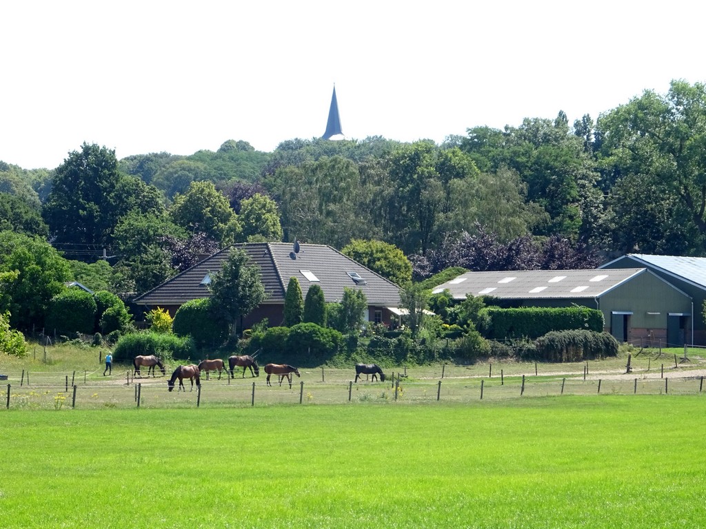 Via een viaduct over de snelweg A12/A3 wordt het klimmen geblazen naar Hoog Elten dat op zo’n 82 m hoogte ligt. De route loopt hier parallel aan het Pieterpad en dat herkennen we nog uit 2008, toen we hier ook liepen. Helaas is het Waldhotel met het prachtige uitzicht (en de heerlijke taart) vlak daarna failliet gegaan, en we kunnen daar dus niet meer terecht. Voor de koffie moeten we naar het door een Nederlander gerunde pannenkoekenhuis, helaas zonder uitzicht.