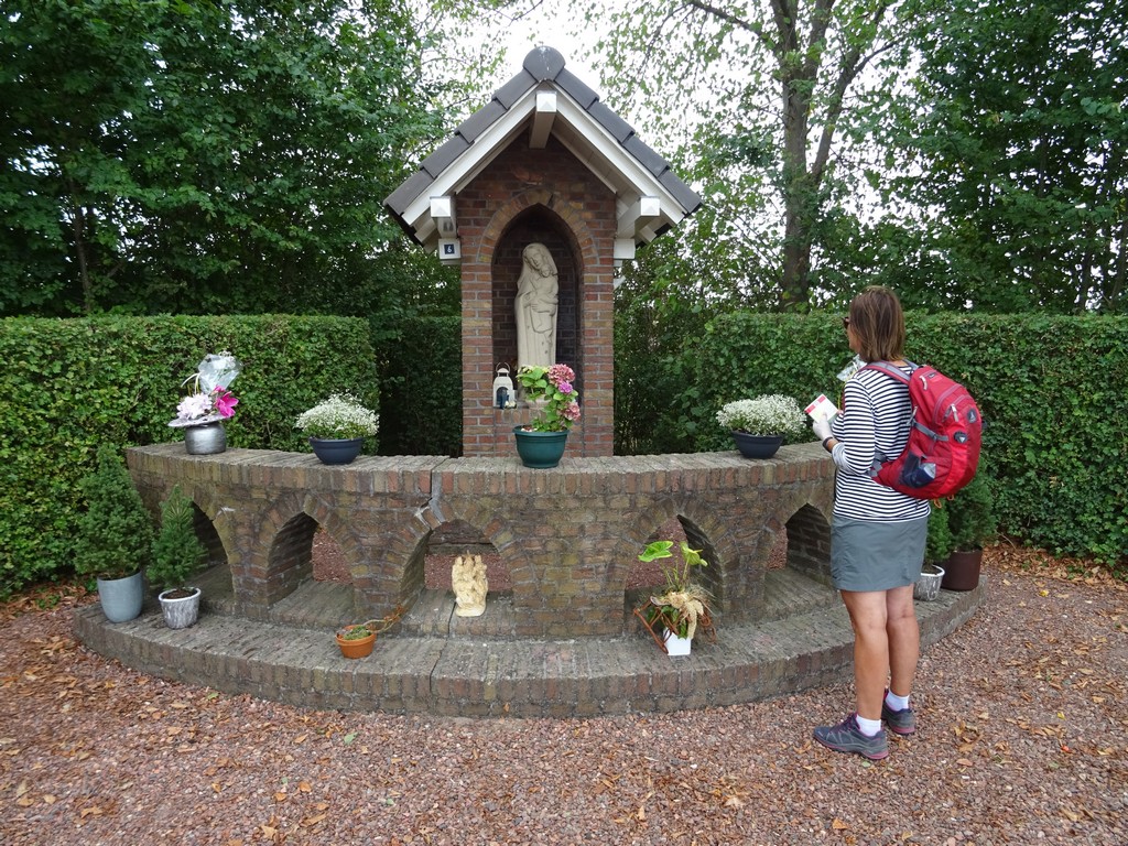 Verderop is de route verplaatst, merken we. Zowel boekje als GPX sporen niet met de tekens. Beetje jammer is dat de route een stuk langs een klinkerweg met autoverkeer loopt (voor Westervelde). Sommige grondeigenaren verbieden dan ineens het wandelen over hun grond. Terwijl dit soort wandelaars toch altijd erg netjes zijn (denken we dan). In Norg blijkt dat we op bekend terrein zijn. We liepen hier eerder, en dat klopt ook want zowel het Jacobspad (Uithuizen naar Hasselt) als het Groot-Frieslandpad komen hier langs. Uiteindelijk gaan we langs Langelo en Alteveer naar Roderesch, waar we om 17:30 uur aankomen bij de auto.