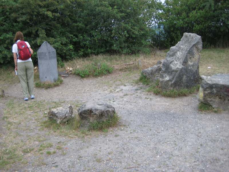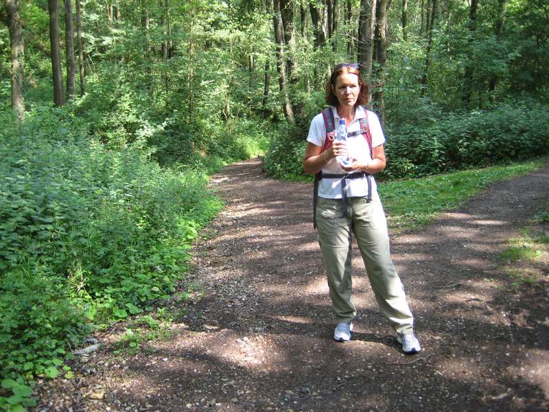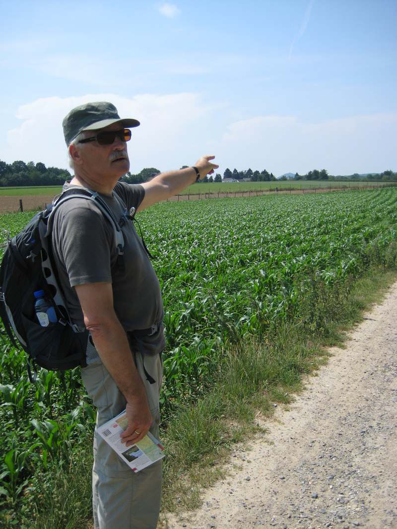 De tocht begint met een wandeling van ergens halverwege de Pietersberg, waar we de auto parkeren, naar het station. Vandaar per bus naar Valkenburg en dan nog een stukje lopen naar Strabeek. Toch al weer 4 km extra gelopen daardoor! Maar de zon schijnt en het is heerlijk weer om buiten te zijn. We lopen eerst een stukje langs de Geul en moeten dan klimmen naar het plateau. Het bos zit al vol met mountainbikers, waarvoor je op moet passen, want de paden zijn smal. Vandaar naar Terblijt. Even buiten het dorpje staat een boerderij waar we koffie drinken. Er lopen 2 kippen met jonkies rond. De nog jonge boer komt even een praatje maken. Vervolgens verder naar de Bemelerberg met grotten. En dan doemt Maastricht al op. Als we de Maas oversteken zien we erg donkerblauwe onweersluchten en horen we gerommel. Snel maar door nu, anders regenen we nog kletsnat.